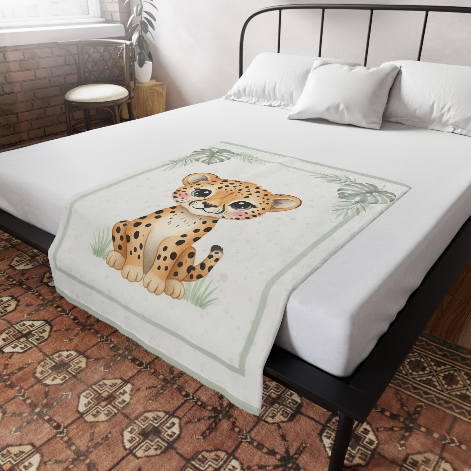 This velveteen plush blanket is the perfect addition to any Baby Cheetah themed nursery. This blanket is soft to the touch and lightweight, providing a comfortable and cozy feeling. Ideal for parents looking to complete their nursery decor with a matching blanket.