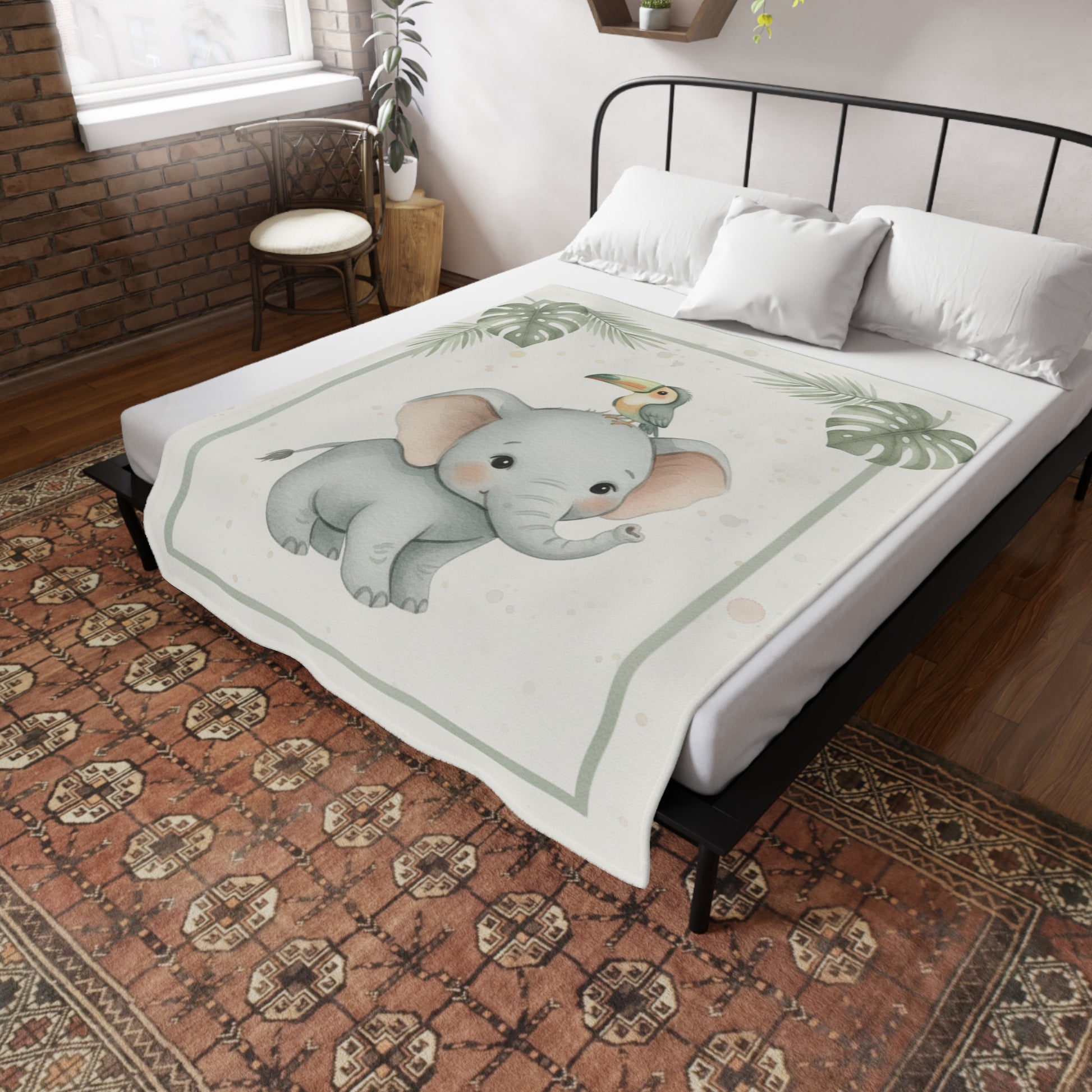 Baby Elephant 2- Baby Safari Plush Blanket -Coordinates with Baby Safari nursery items Baby