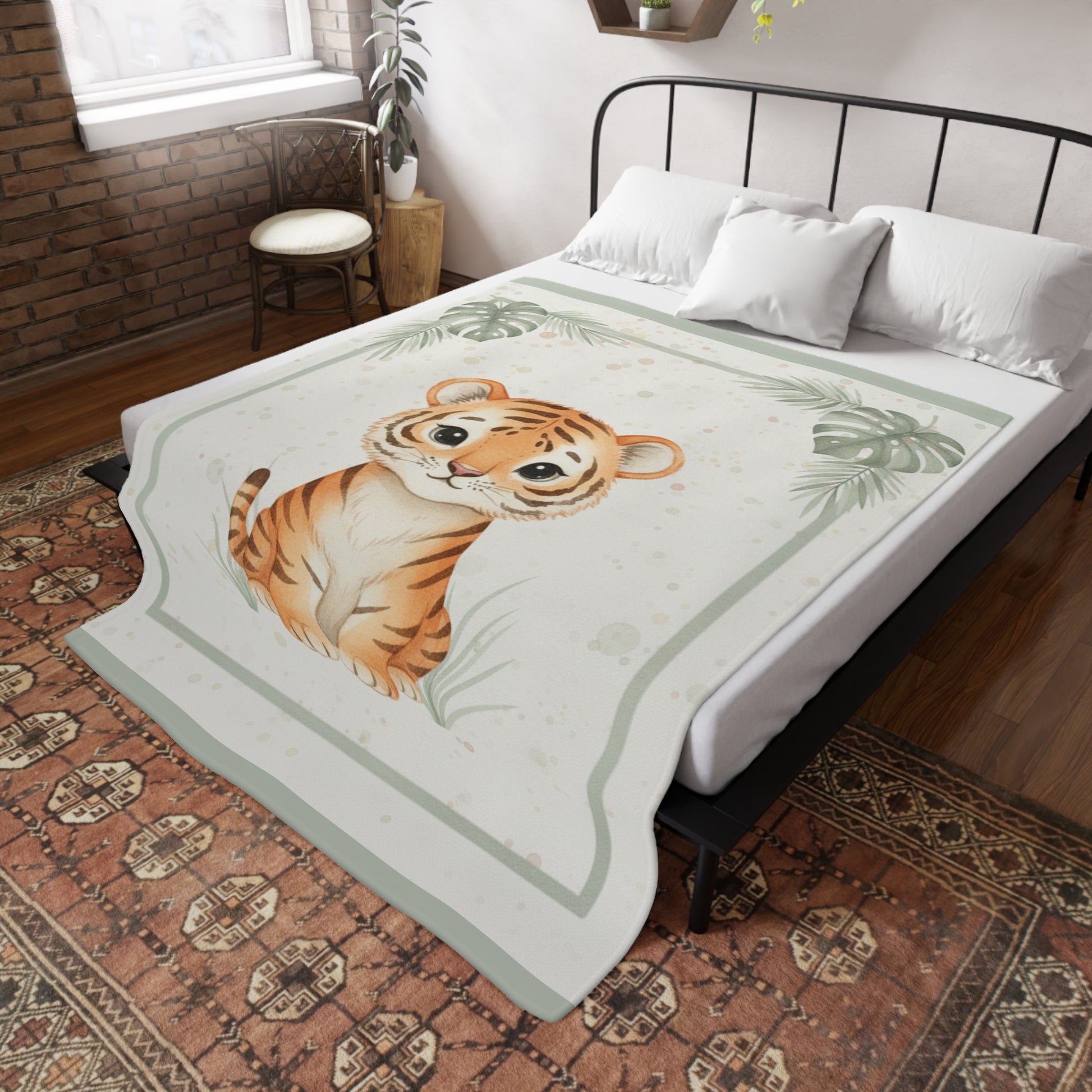 This velveteen plush blanket is the perfect addition to any 'baby Tiger" themed nursery. This blanket is soft to the touch and lightweight, providing a comfortable and cozy feeling. Ideal for parents looking to complete their nursery decor with a matching blanket.