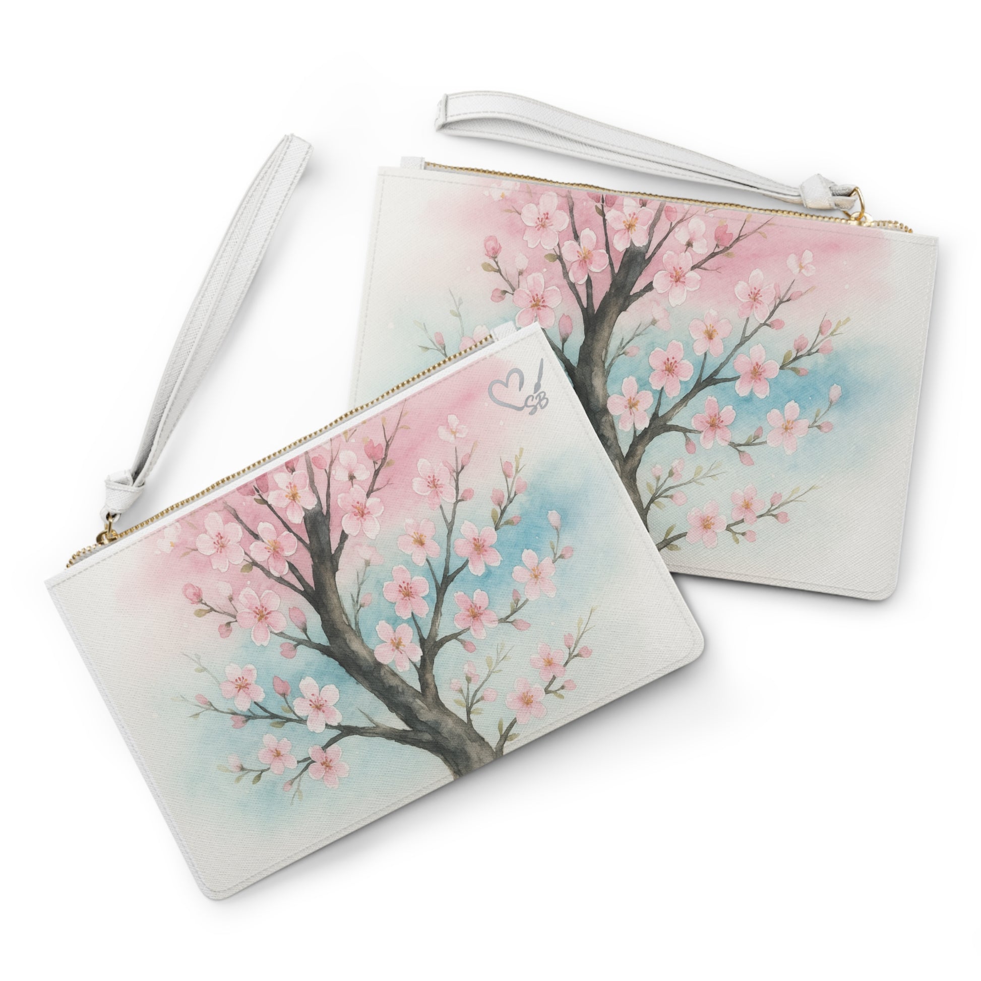 Cherry Blossom Clutch Bag — Echoes of the Masters Collection — Watercolor Floral Wristlet