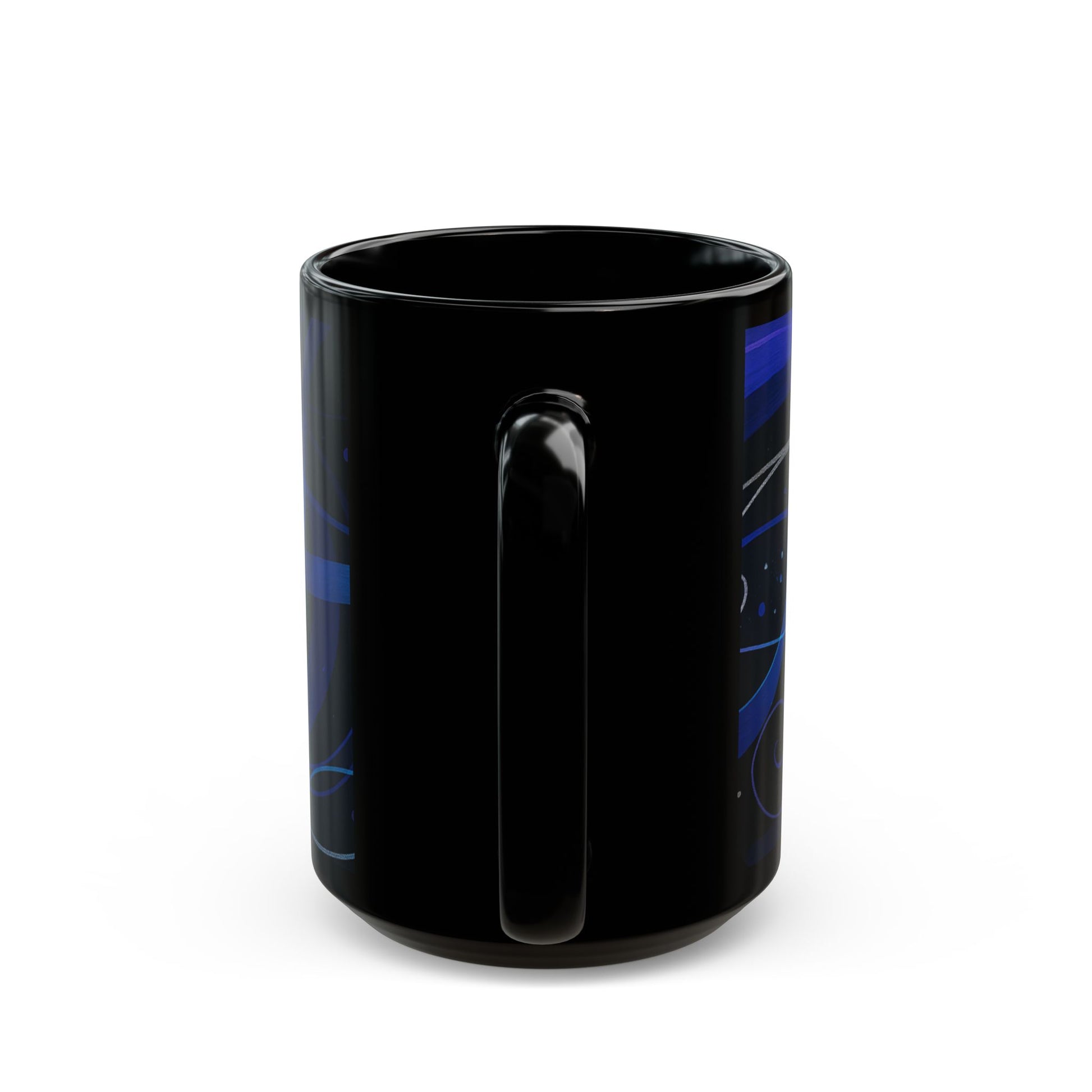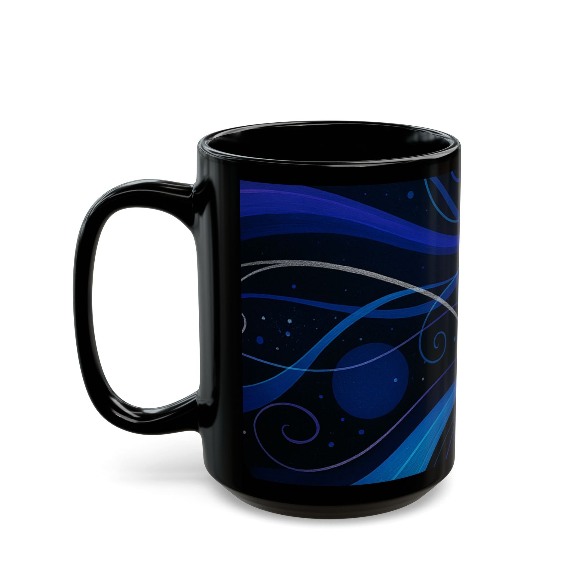 Deep midnight swirls curl across a glossy black mug, catching the light like a private night sky. Hold it and feel the warmth of your drink against that smooth C-shaped handle as the subtle blue and indigo flourishes seem to move with every sip. This mug belongs on late-night desks, beside sketchbooks and vinyl stacks, or in quiet corners where ideas bloom. It keeps your coffee or tea easy to heat and easy to clean, so the ritual stays simple and the mood stays uninterrupted.