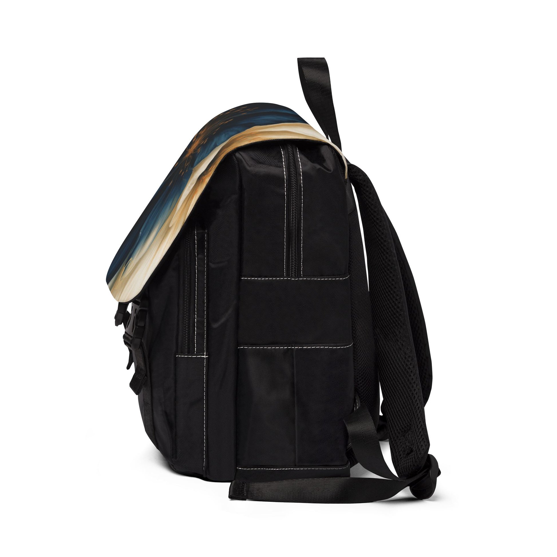 A refined canvas backpack with an artful floral flap that turns everyday carry into a small statement. The Oxford fabric keeps the bag lightweight yet resilient, while the padded mesh back and straps make long walks or commutes feel easier. Inside, organized compartments hold a water bottle, tech, and daily essentials without losing shape. The dark black base and interior keep the look grounded so the painted blooms stand out — elegant, wearable, and quietly personal.