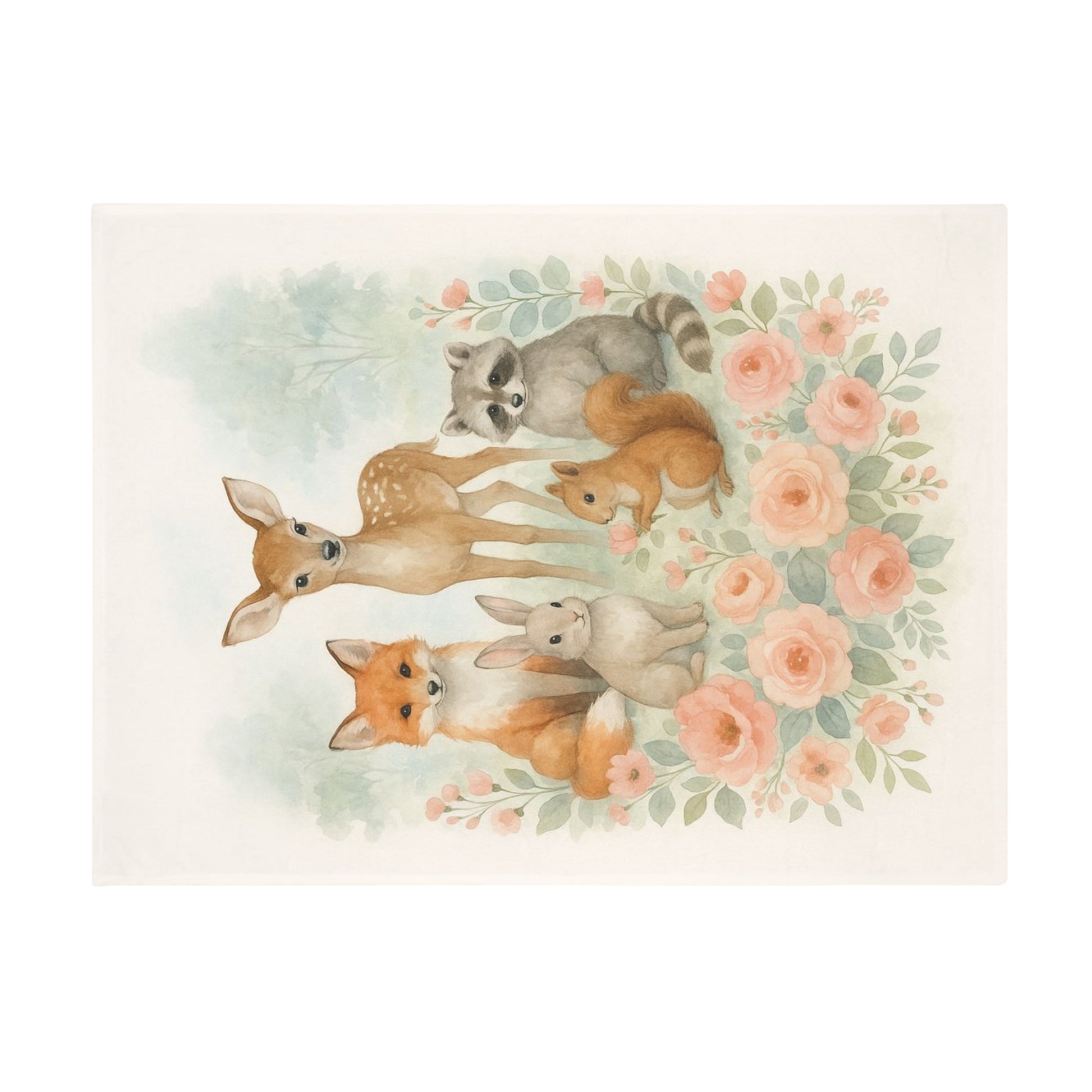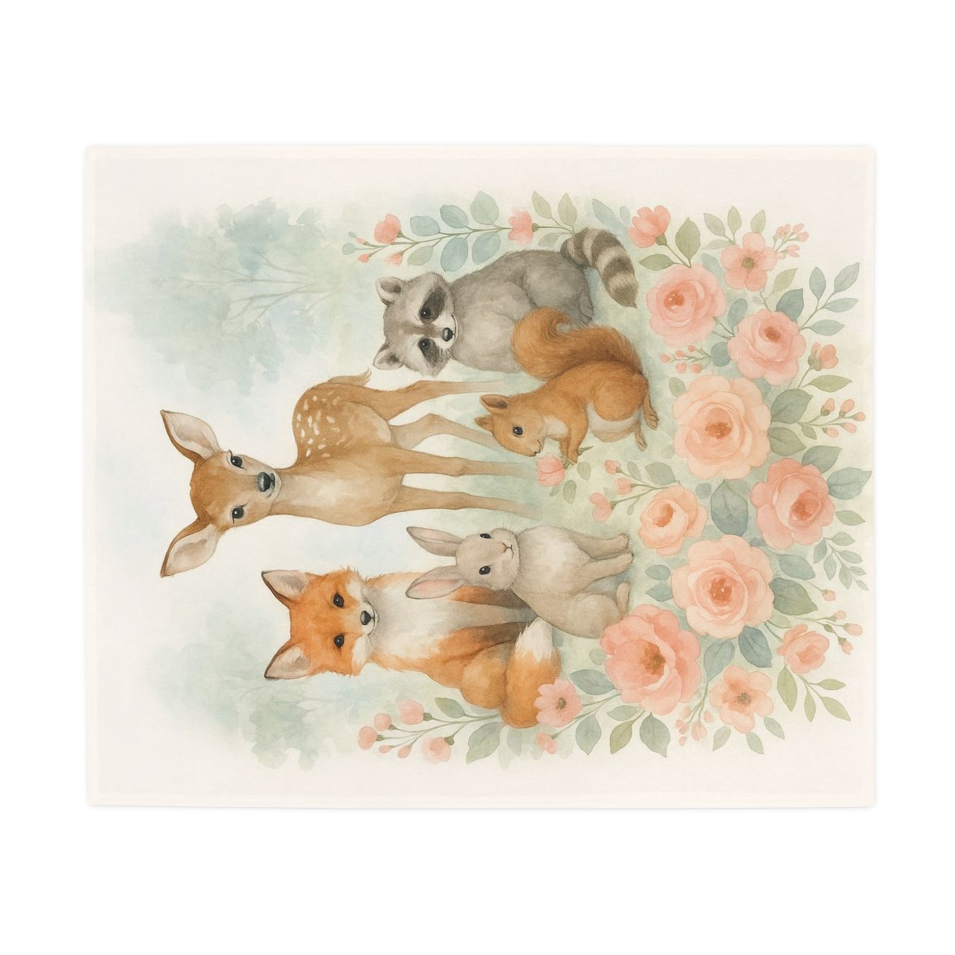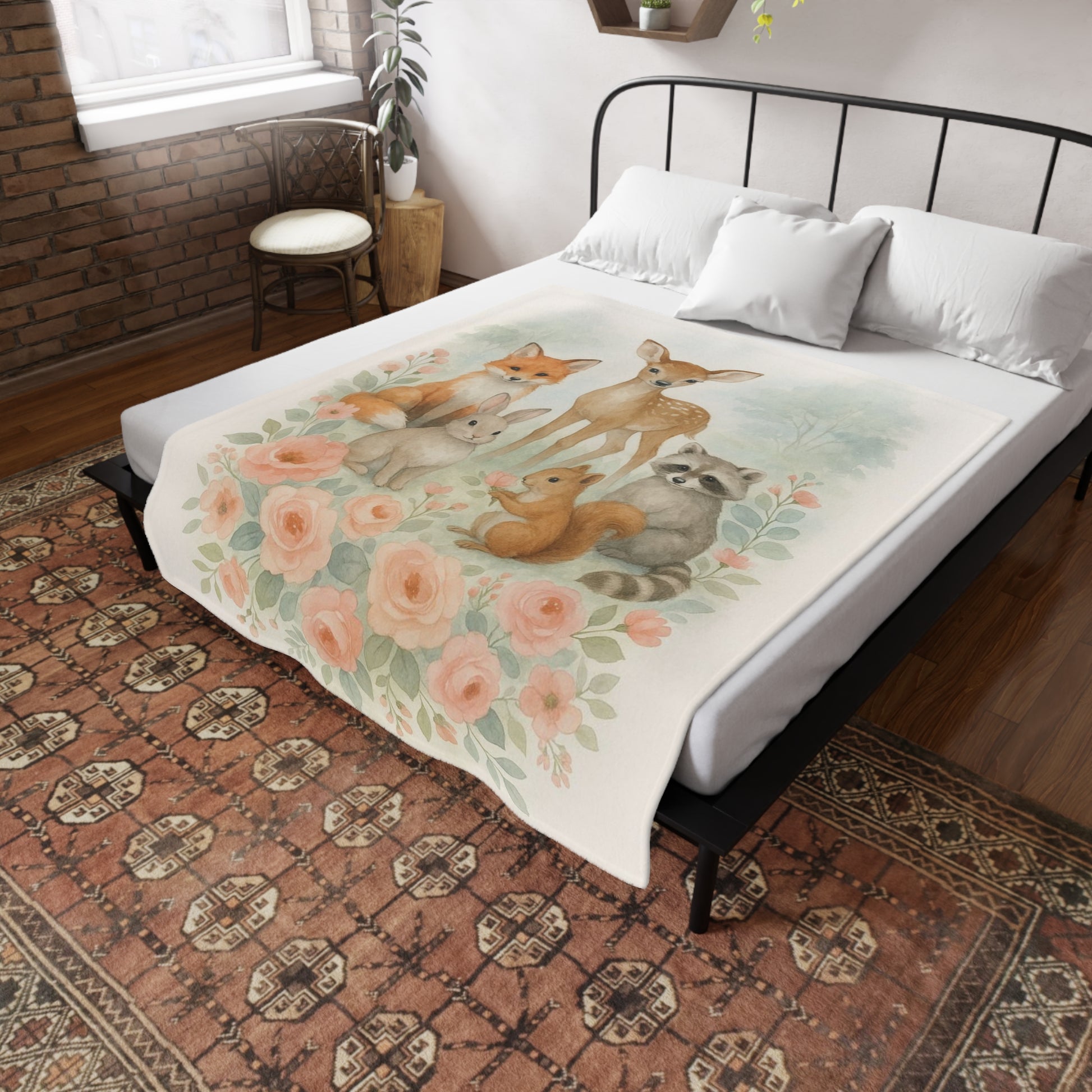 Woodland Friends Floral Country Chic Plush Fleece Blanket